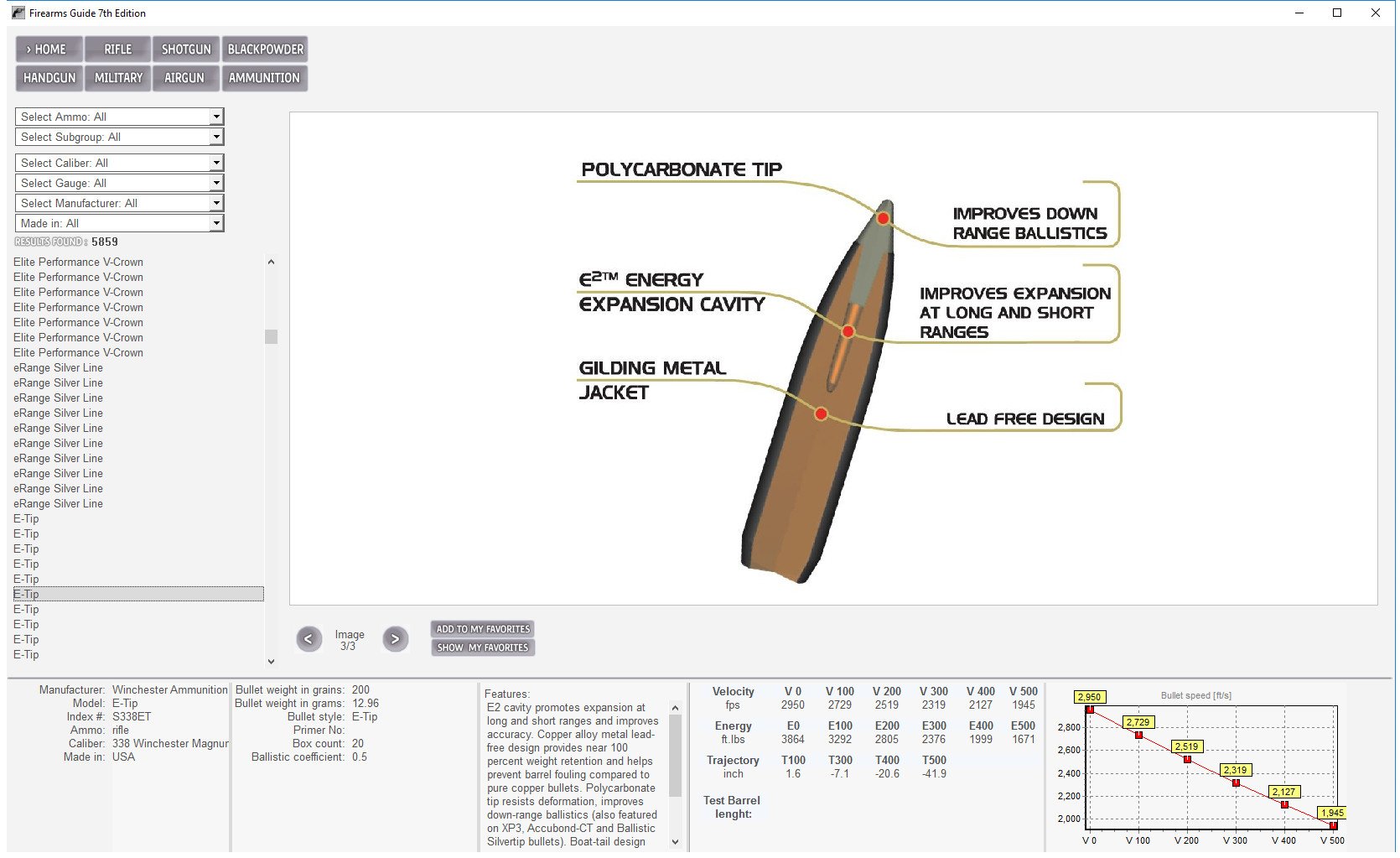 • Over 7,000 rounds in all calibers presented with tech specs, features, hi-res images and ballistics.