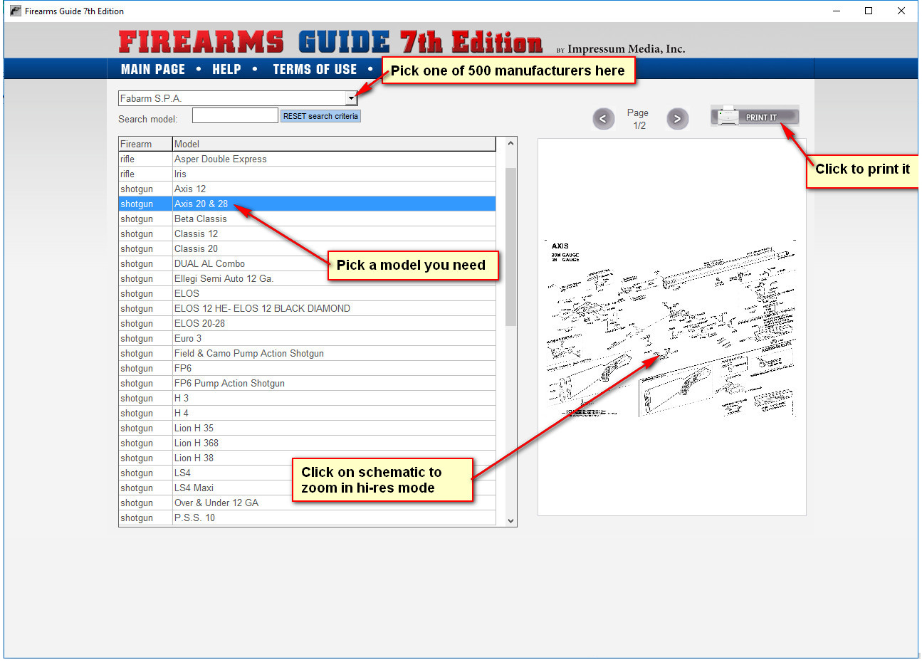 2. Schematics & Blueprints Library with over 8,000 printable high resolution gun schematics (exploded views or diagrams) with parts lists and blueprints from 550 manufacturers!
